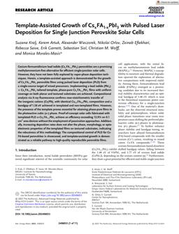 Kralj, S., Artuk, K., Wieczorek, A., Orlov, N., Eftekhari, Z., Saive, R., … Morales-Masis, M. (2025). Template-Assisted Growth of CsxFA1-xPbI3 with Pulsed Laser Deposition for Single Junction Perovskite Solar Cells. Adv. Energy Mater., 15(24), 2406033: 1–11. doi:10.1002/aenm.202406033 |