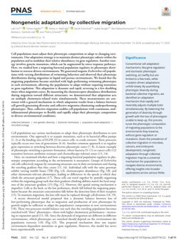 Vo, L., Avgidis, F., Mattingly, H., Edmonds, K., Burger, I., Balasubramanian, R., … Emonet, T. (2025). Nongenetic adaptation by collective migration. PNAS, 122(8), e2423774122: 1–11. doi:10.1073/pnas.2423774122 |