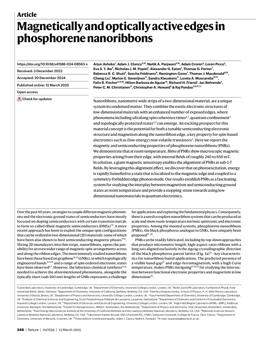 Ashoka, A., Clancy, A., Panjwani, N., Cronin, A., Picco, L., Aw, E., … Pandya, R. (2025). Magnetically and optically active edges in phosphorene nanoribbons. Nature, 639(8054), 348–353. doi:10.1038/s41586-024-08563-x |