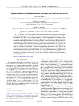 Moffett, A., Ganzinger, K., & Eckford, A. (2025). Comparing kinetic proofreading and kinetic segregation for T cell receptor activation. Phys. Rev. Research, 7(2), 023003: 1–13. doi:10.1103/PhysRevResearch.7.023003 |