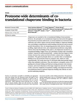 Galmozzi, C., Tippmann, F., Wruck, F., Auburger, J. J., Kats, I., Guennigmann, M., … Bukau, B. (2025). Proteome-wide determinants of co-translational chaperone binding in bacteria. Nat. Commun., 16(1), 4361: 1–14. doi:10.1038/s41467-025-59067-9 |